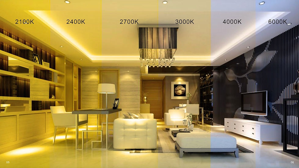 El color fuera de los conocidos de los focos decorativos en los que se ponen pantallas para simular colores como el rojo, verde o azul, tenemos los colores naturales de la iluminación y esta se calcula por temperatura, en la que dentro de nuestro espectro visual se consideran los colores fríos (Entre azules y blancos) que van desde los 10,000°K hasta los 6,000°K y de ahí empiezan los colores cálidos (Entre amarillos y naranjas) que van desde los 5,000°K a los 1,000°K.